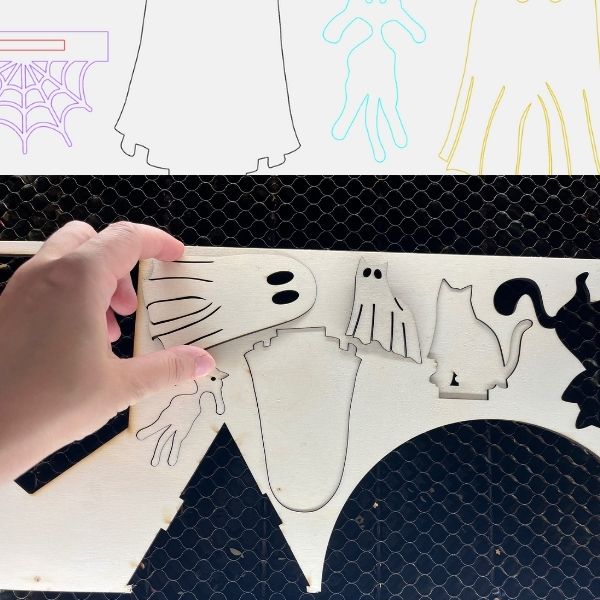 Diese digitale Vorlage (SVG/XCS-Datei) ist perfekt für den Lasercutter (z. B. xTool) geeignet und ermöglicht dir, die abgebildeten Figuren selbst herzustellen. Ideal für deine Haustür, Fensterbank oder als Tischdeko.