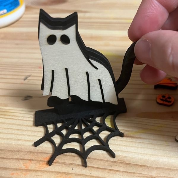 Zusammengeleimte Figuren in den Sockel stecken und