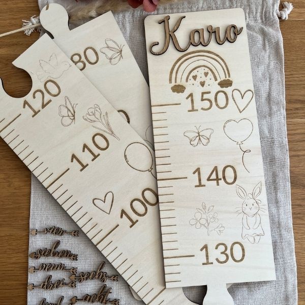 Meterstab und Jahrespfeile mithilfe deines Lasers gravieren und ausschneiden.