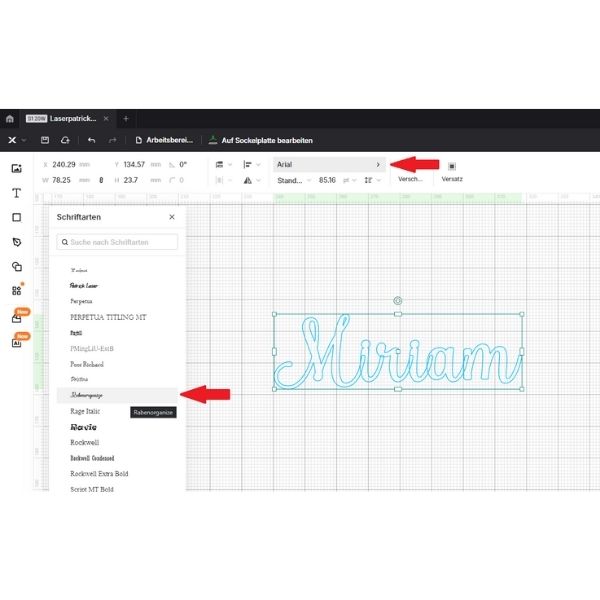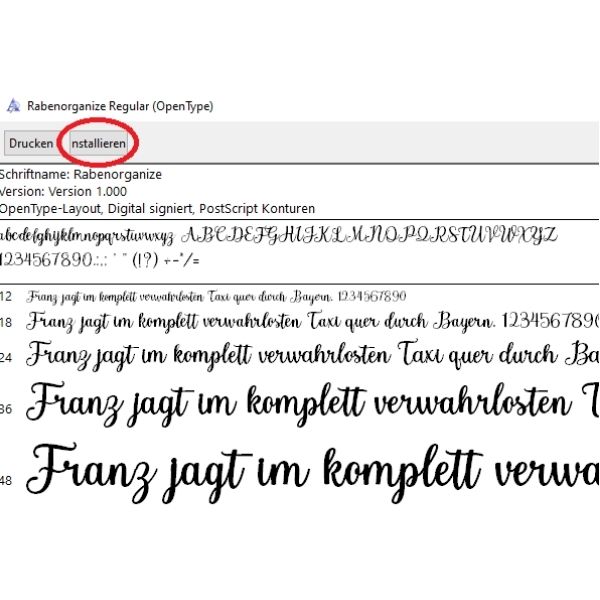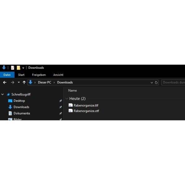 (hier im Beispiel war es die Schriftart „Rabenorganize“)